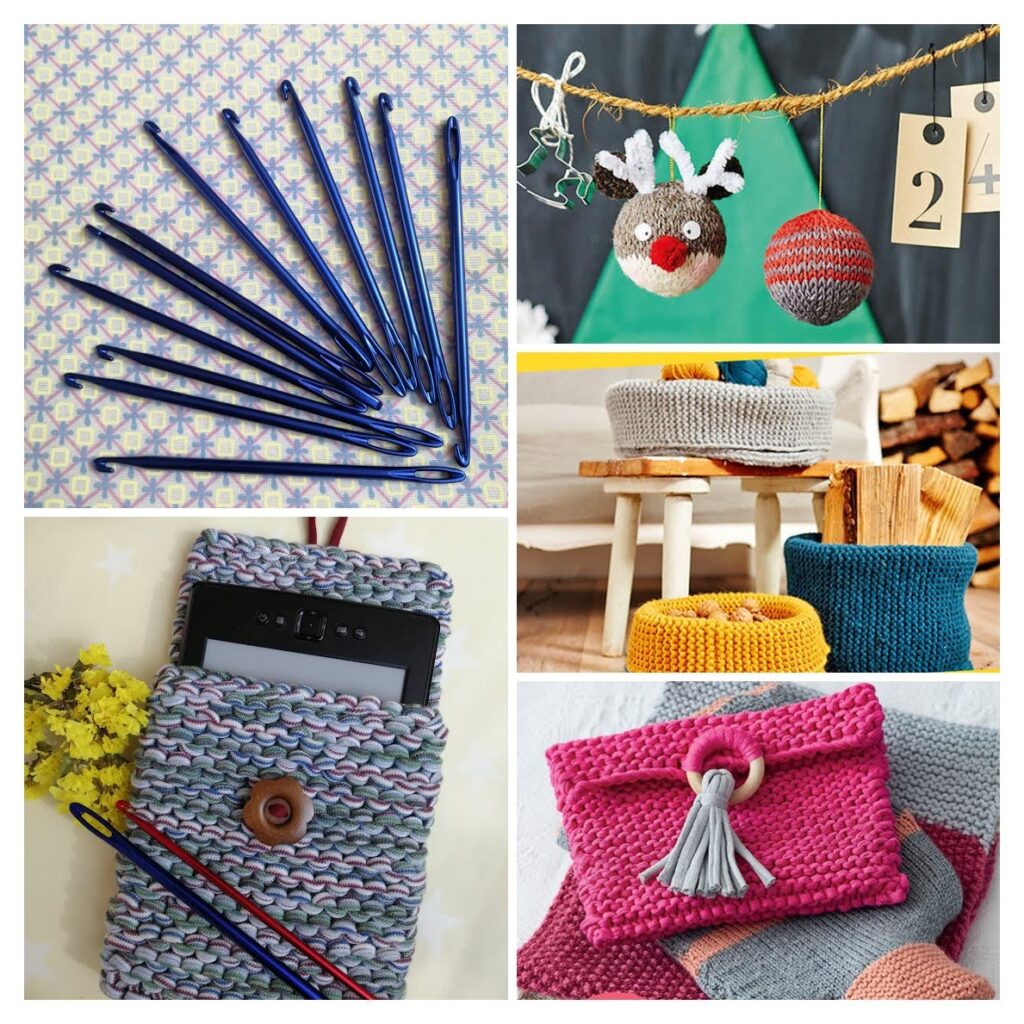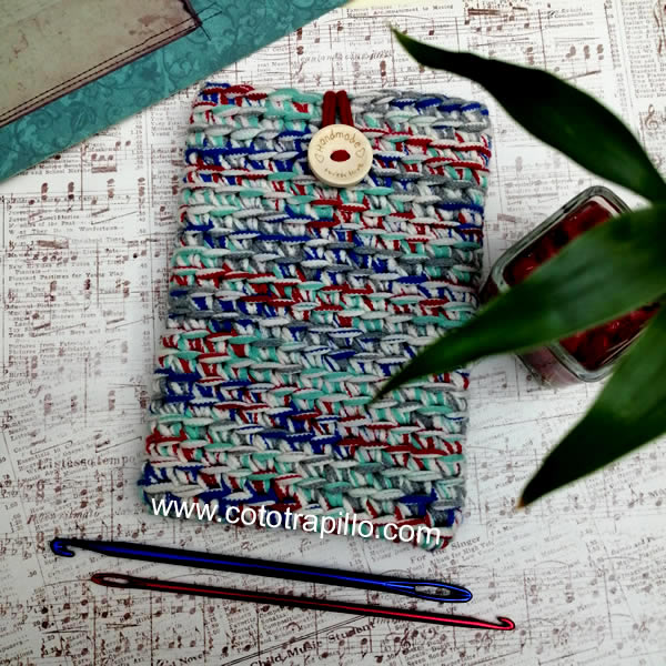 Se usa Knooking para tejer carteras, porta móviles, cestas, individuales – salvamanteles, bolsos, bufandas, cuellos, gorros, zapatillas de estar en casa,, etc… aquí algunos ejemplos: