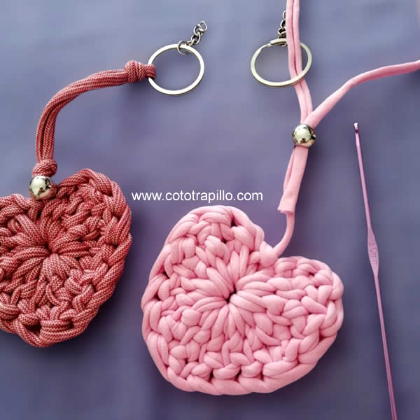 Se acerca San Valentín nos preparamos tejiendo unos lindos llaveros con forma de corazón y de estilo Boho