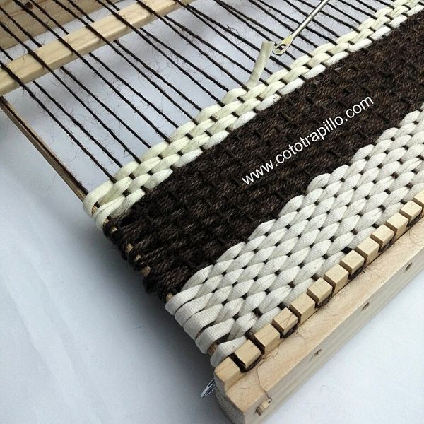 Se pueden usar diversos materiales para tejer, Trapillos, Lanas, Cordones, Soguillas, etc