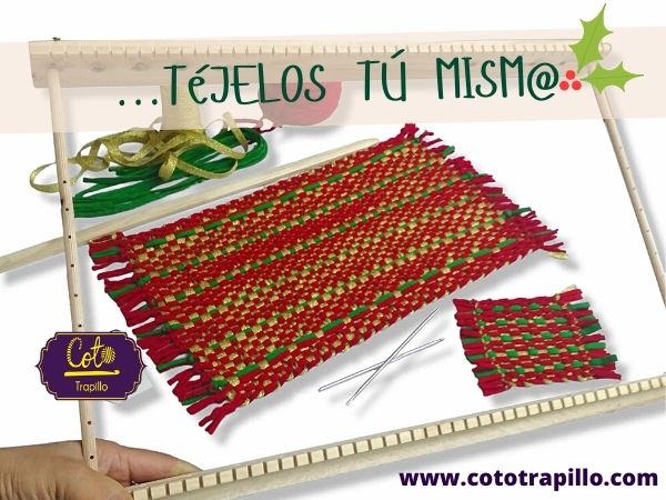 Es Regulable, se pueden tejer conjuntos de tapetes, individuales, salvamanteles, posavasos, etc en varios tamaños